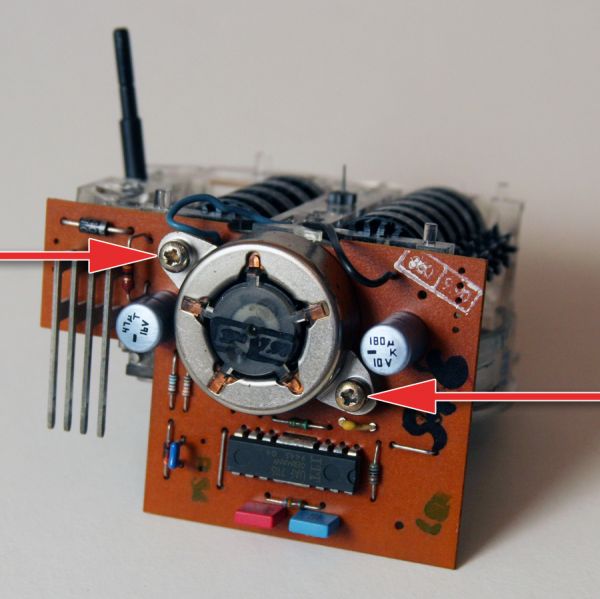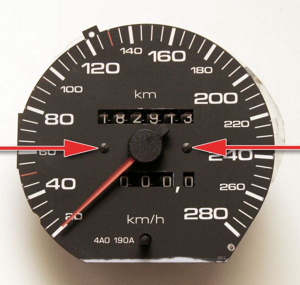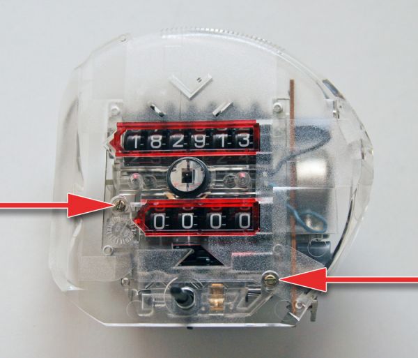 Replacing this little planetary gear is simple, it can be easily found inside the odometer (screws to undo are marked with arrows). The most complicated in the whole process is removing the needle.